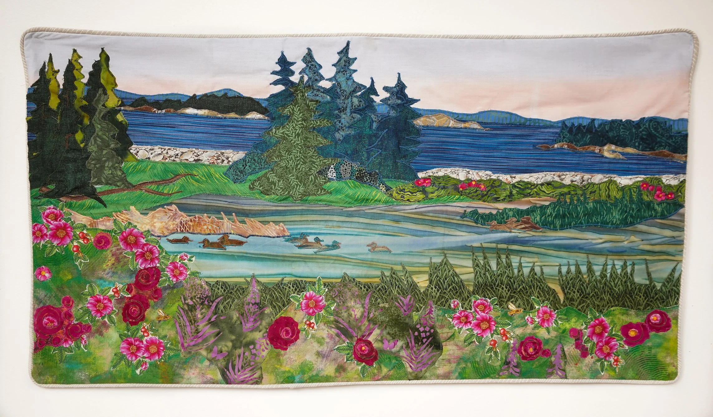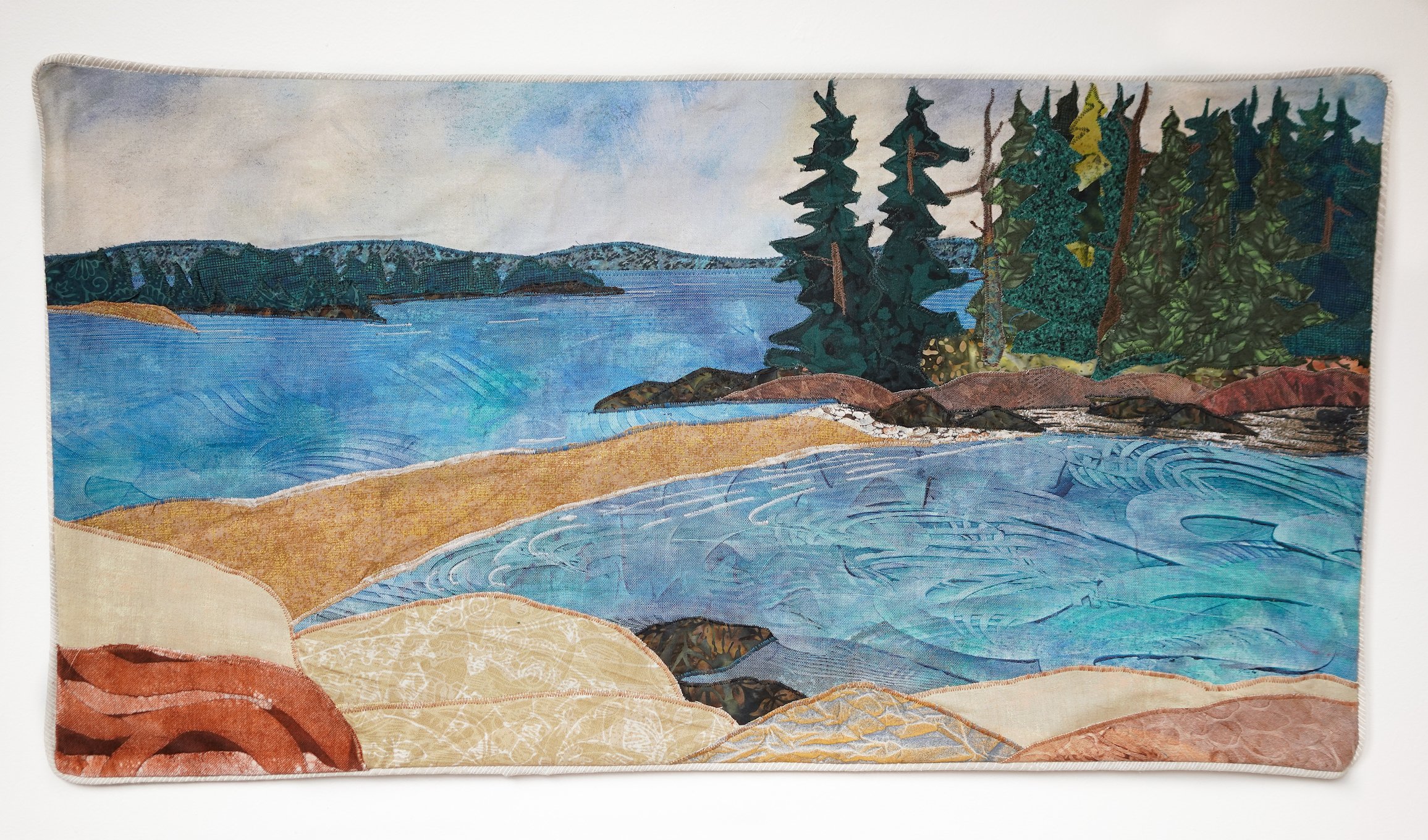 In 2020, I got a commission from Aragosta, a lodge in Deer Isle, to make 15, 36” x 20” appliqué bolster pillows. One for each cabin at Goose Cove. They are all inspired by places on Deer Isle.